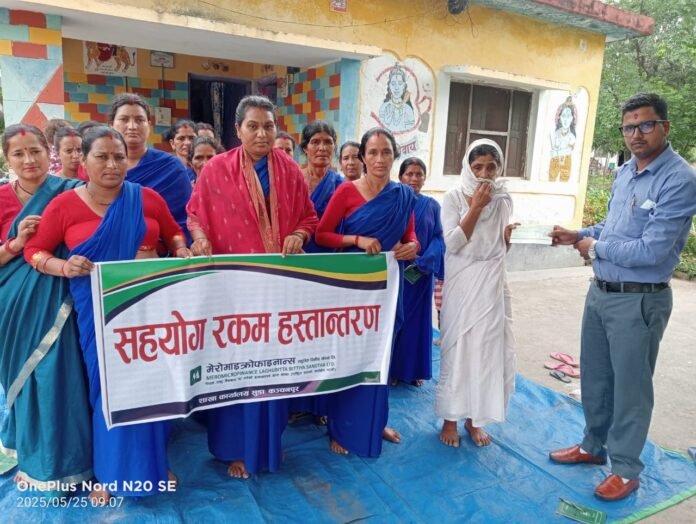 मेरोमाईक्रोफाईनान्स लघुवित्त वित्तीय संस्था लि. शाखा कार्यालय सुडाबाट बीमा वापतको रकम हस्तान्तरण गरिएको छ। कञ्चनपुर जिल्लाको बेदकोट नगरपालिका–७ गाउजि निवासी केन्द्र नं. ०७५ की सदस्य श्रीमती कलसा विष्टलाई रु २,००,००० (दुई लाख) को चेक प्रदान गरिएको हो।